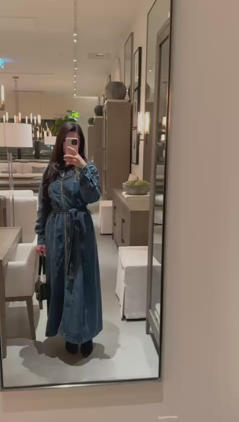 A timeless denim with a structured, clean silhouette made to elevate everyday modest dressing.